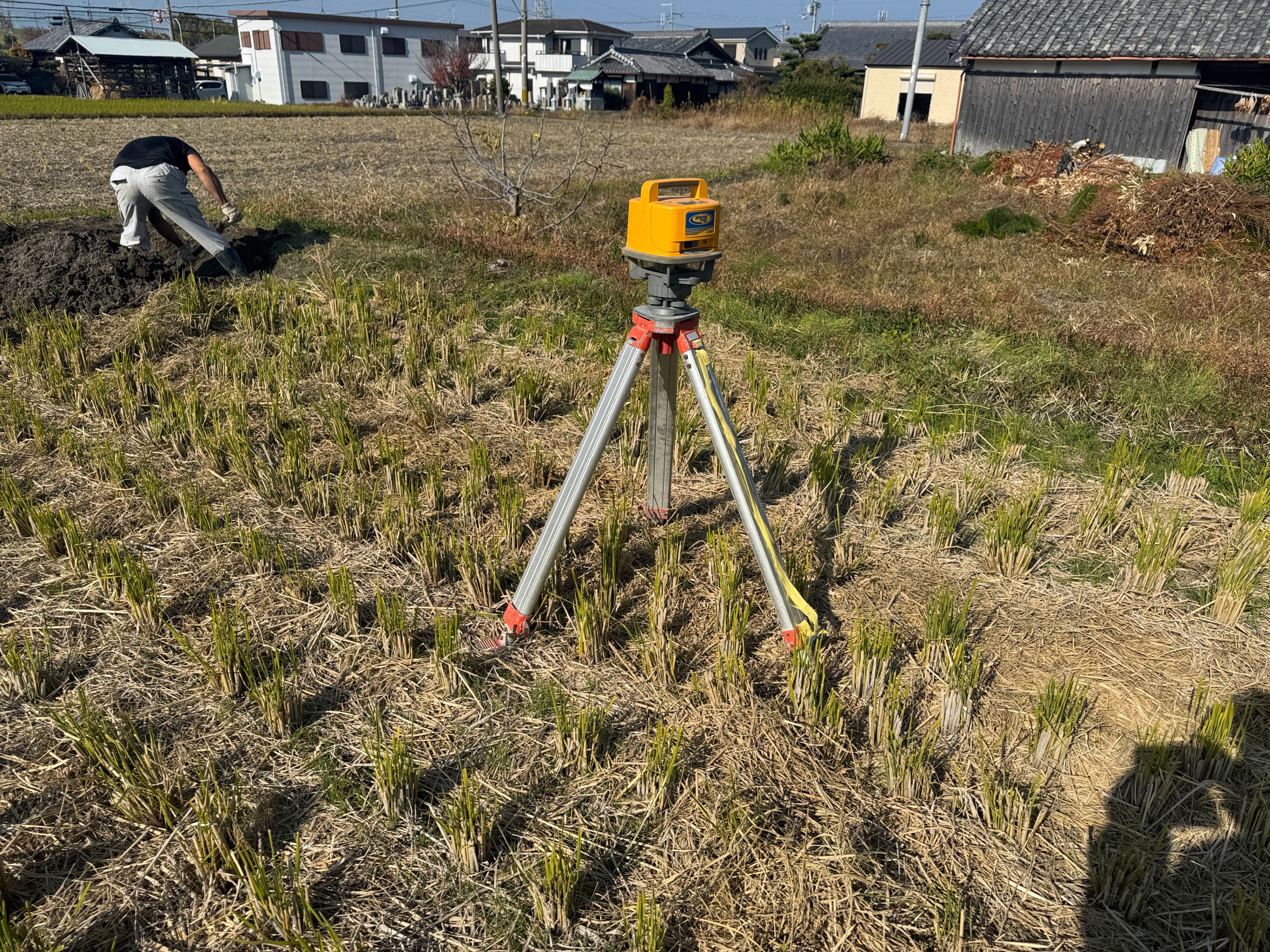 土を何度も何度も盛っては転圧し畔の水平を出し工事完了しました