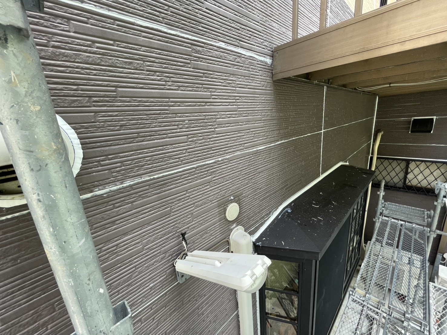 玄関柱の修復もですが、外壁塗装前のシール工事です