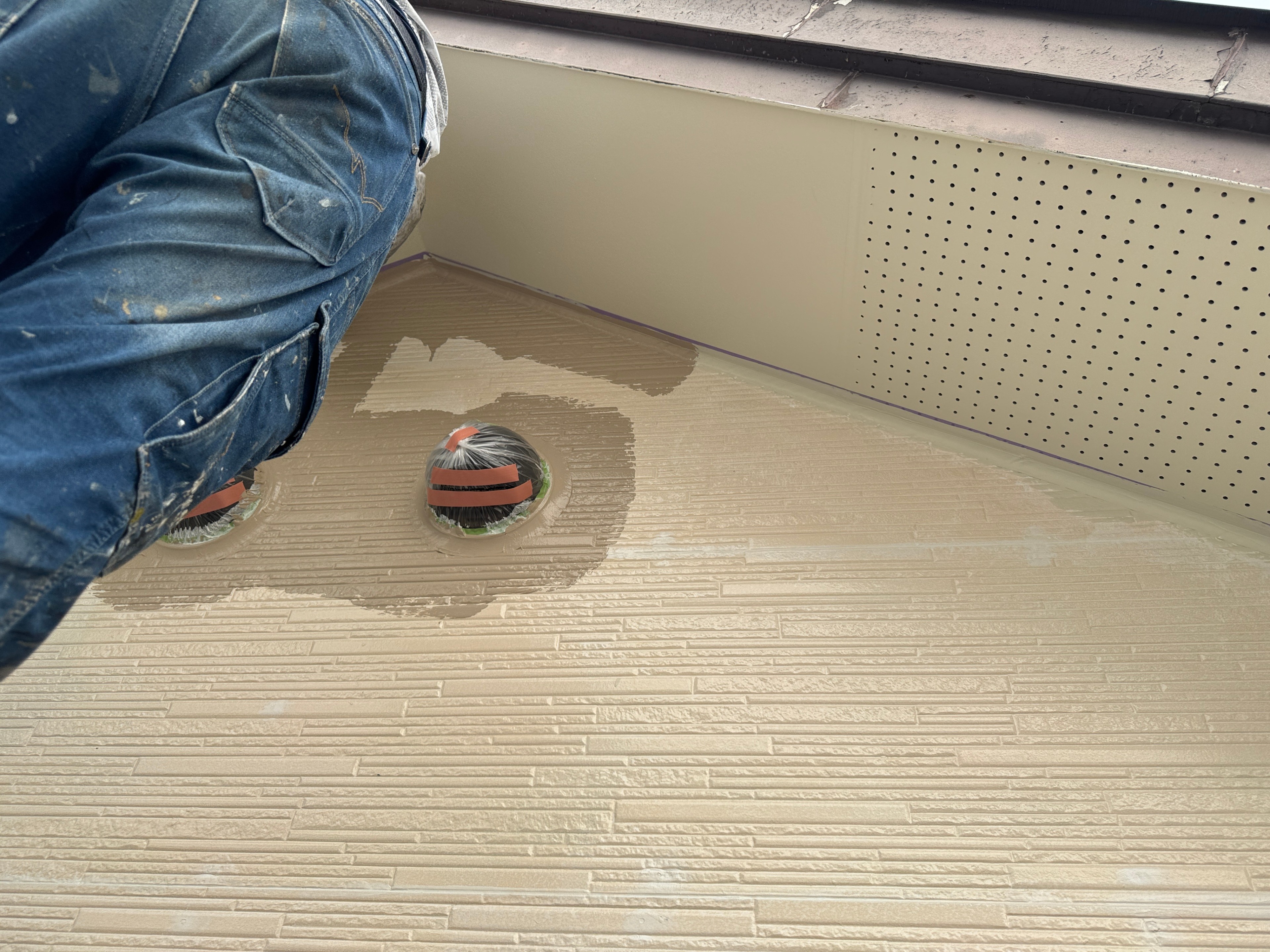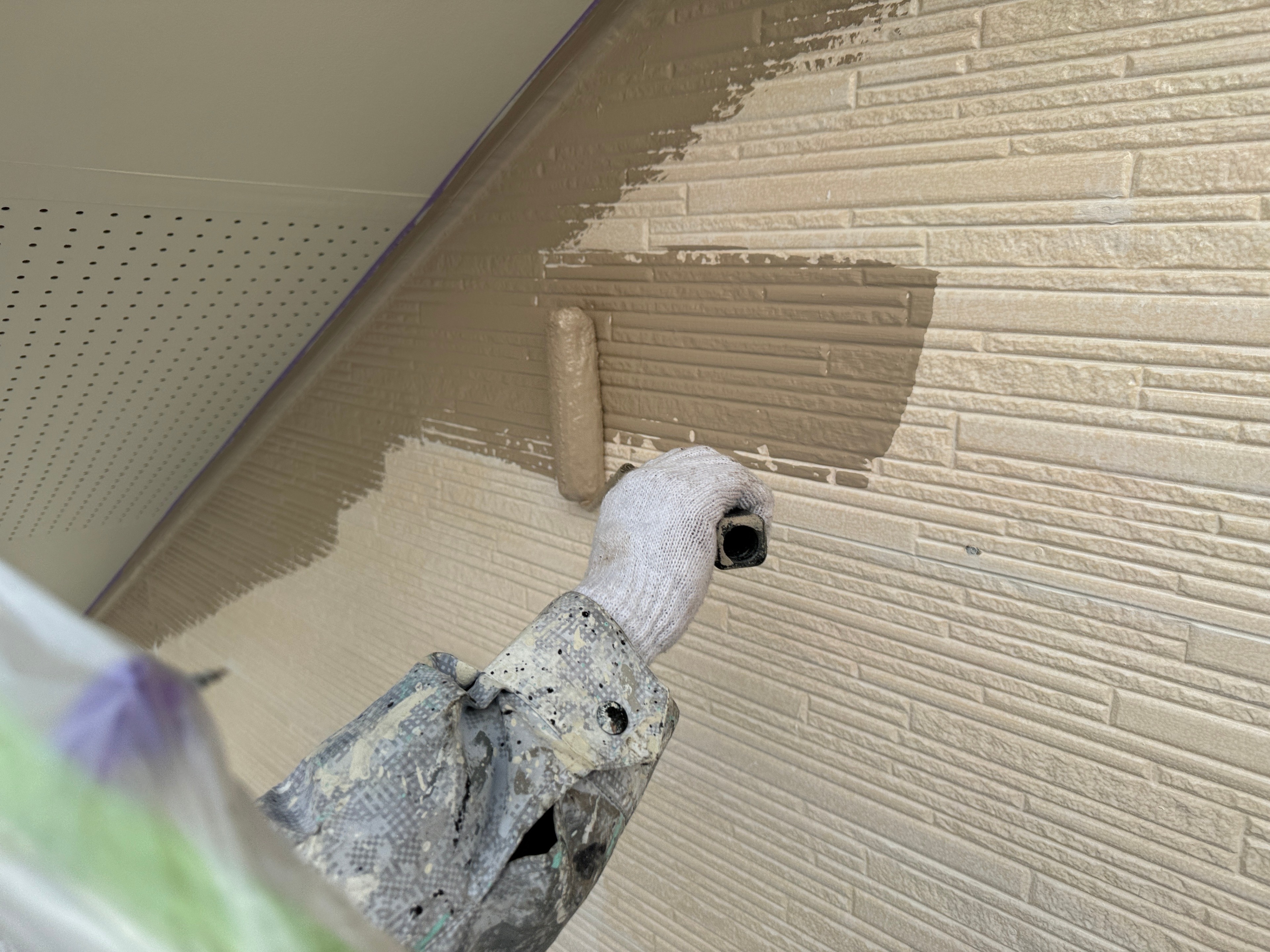外壁の中塗りです塗料は遮熱塗料を使用しています