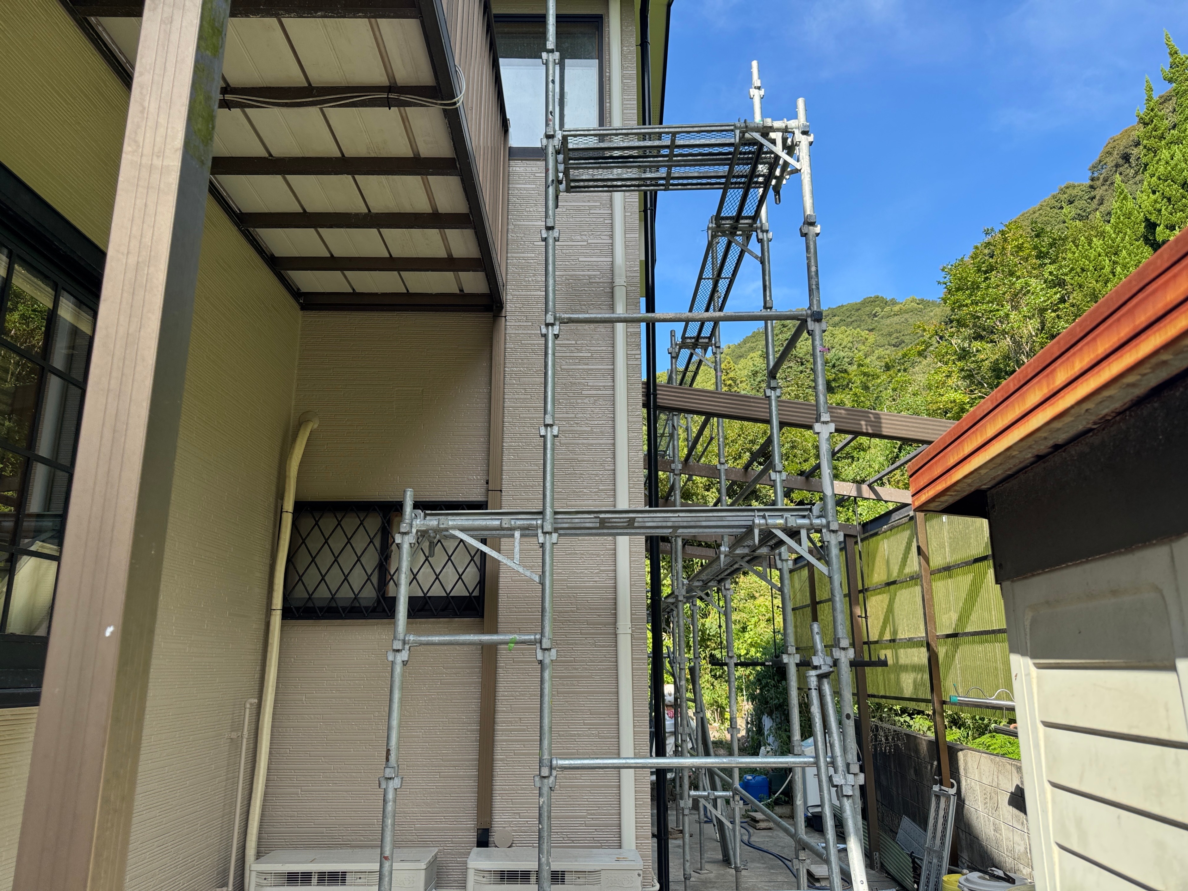大阪府岬町のYさま宅の施工が終わり足場解体をしました