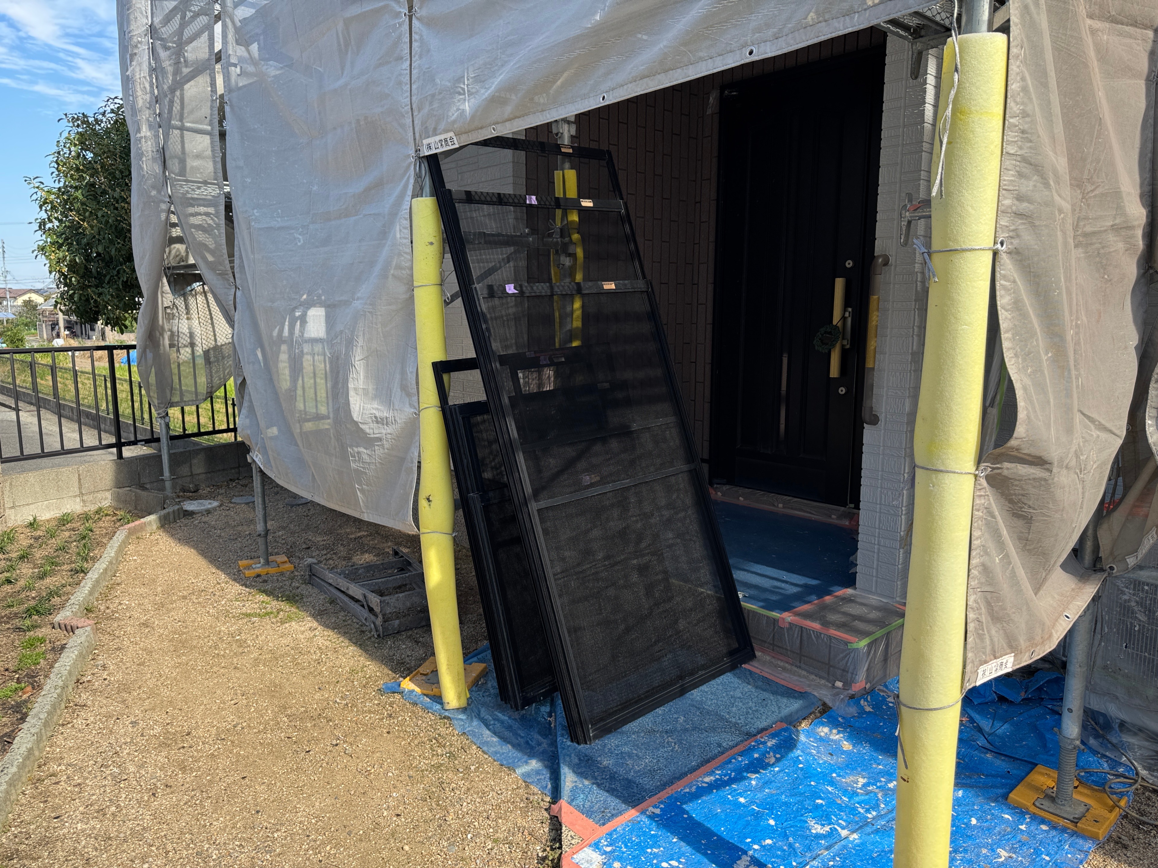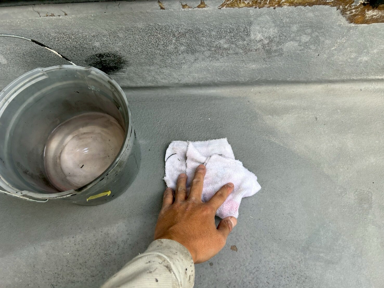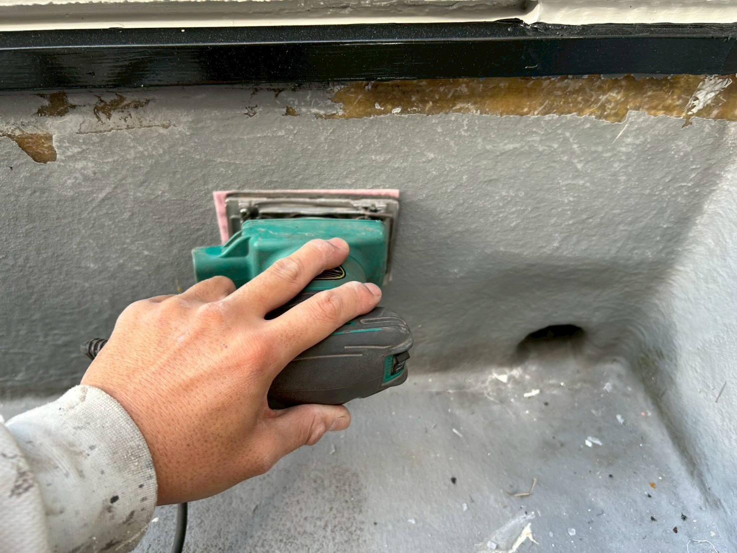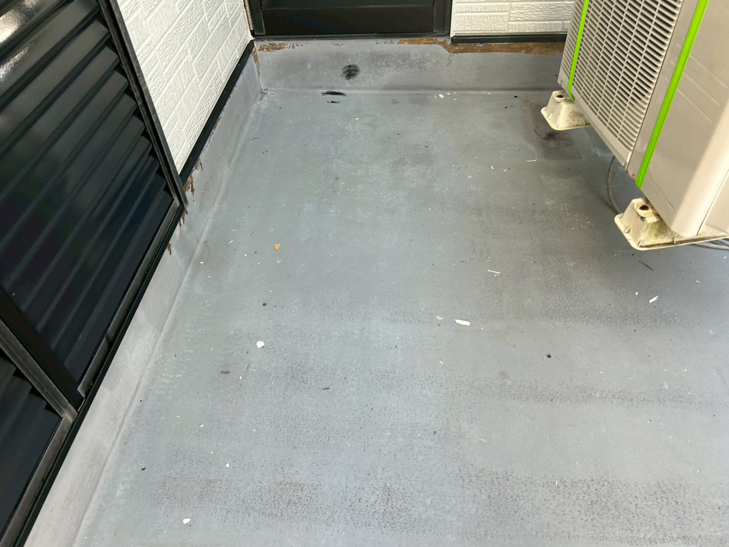ベランダの床(FRP防水)保護塗料の塗替えの為素地の研磨と清掃をしました