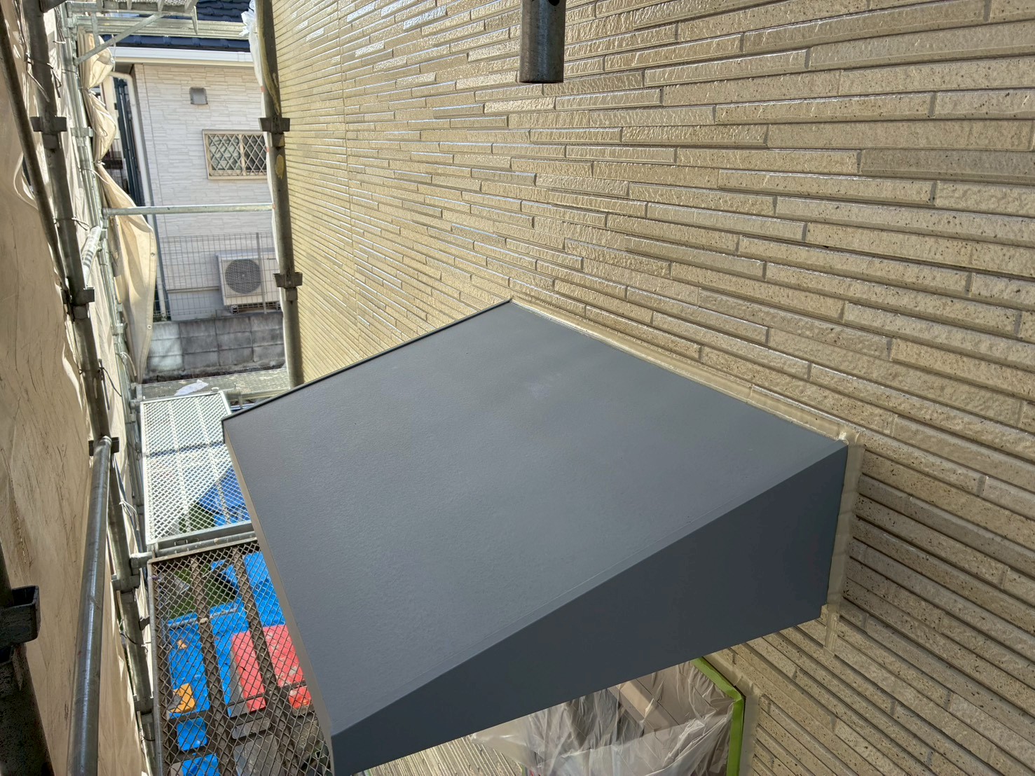 勝手口の庇もアルミ製品ですが、汚れがあり塗装しました