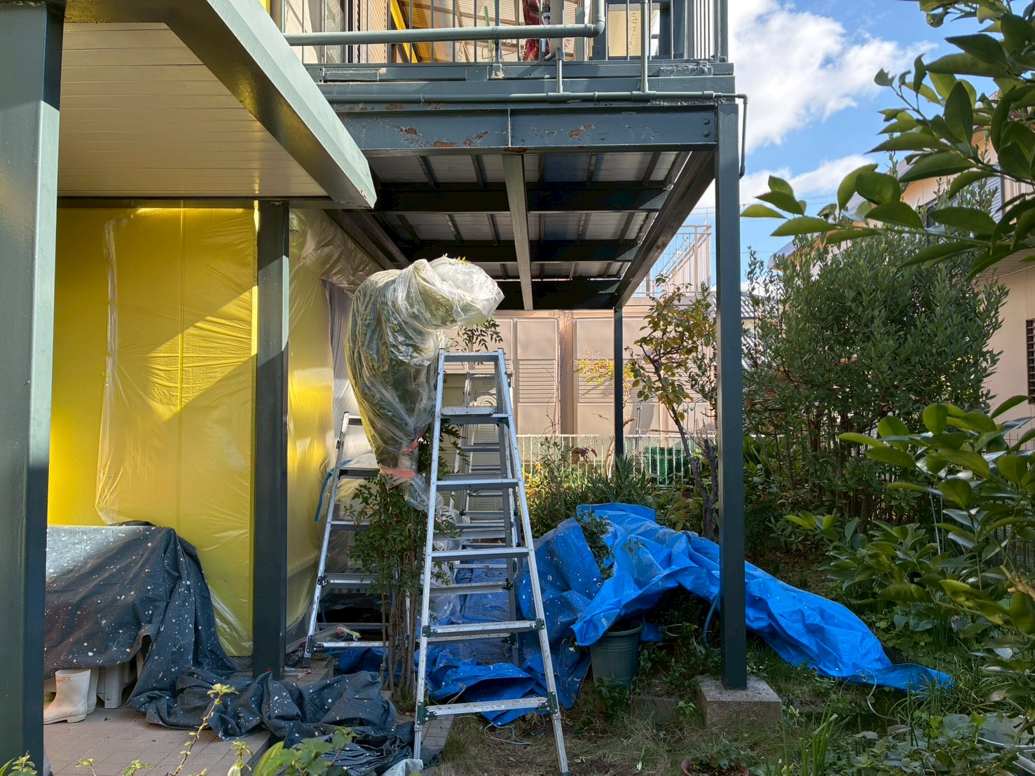 ベランダの鉄骨の塗替えです