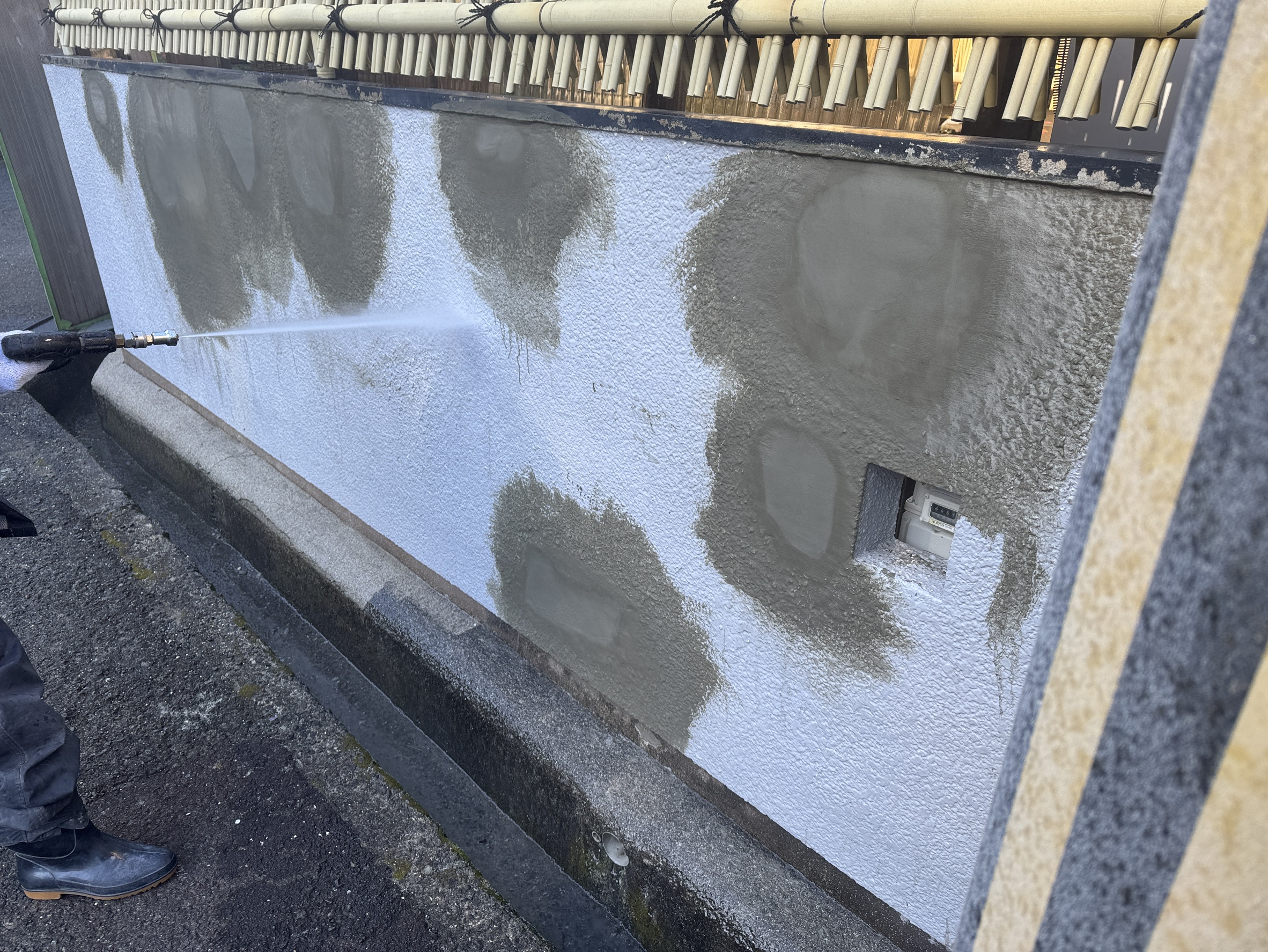 大阪府阪南市のMさま邸の塀の水洗いです