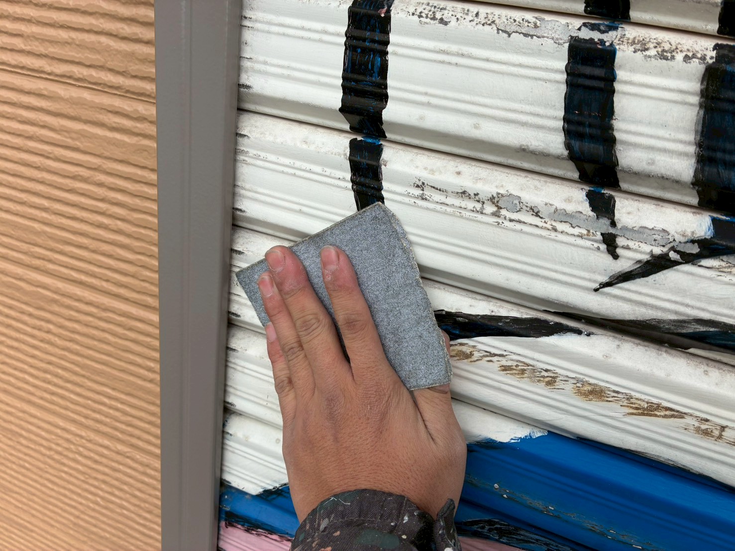 塗装予定が無かった絵の描いているシャッターですが