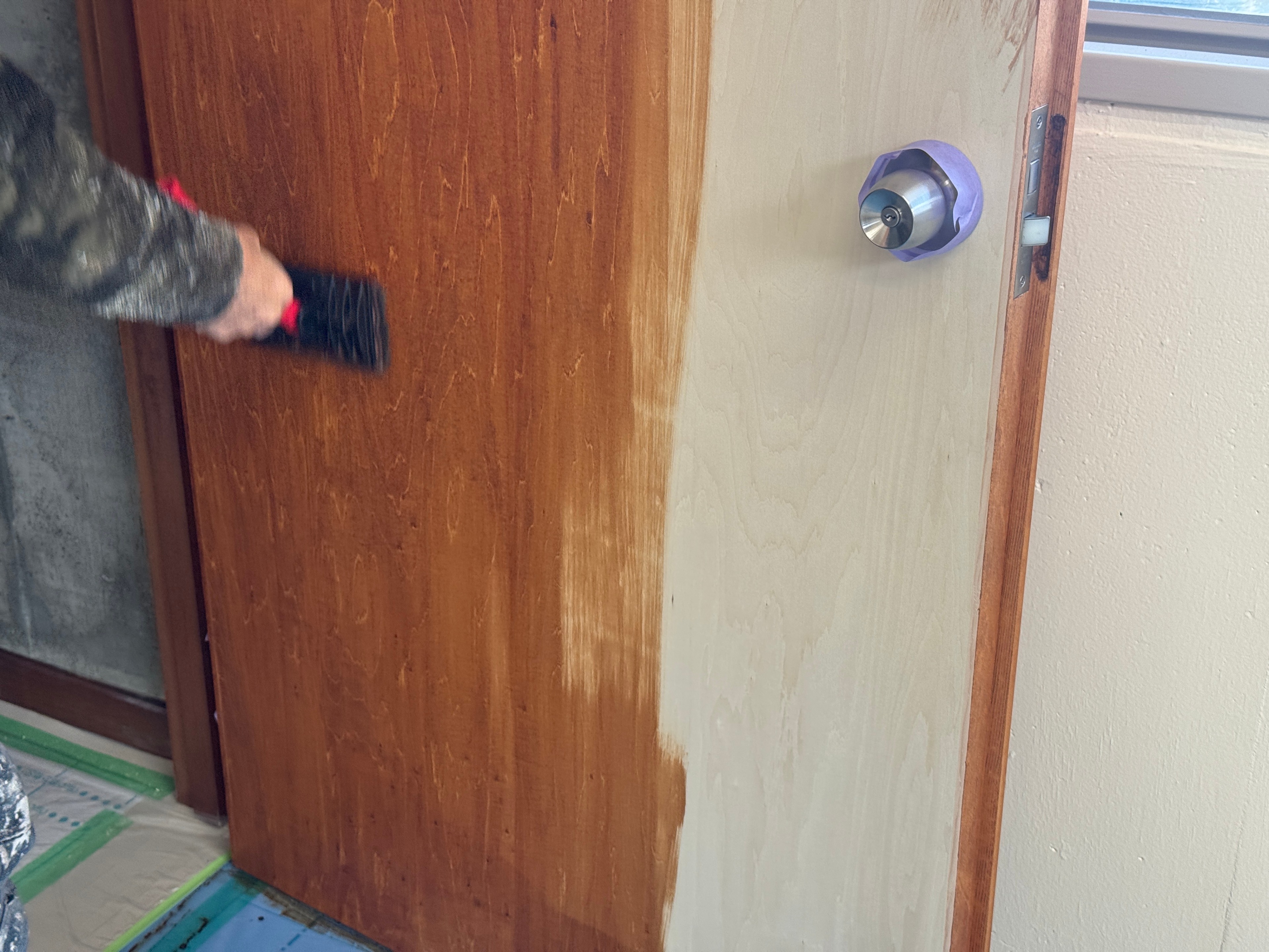 新調された建具を木目を出すステイン塗装です