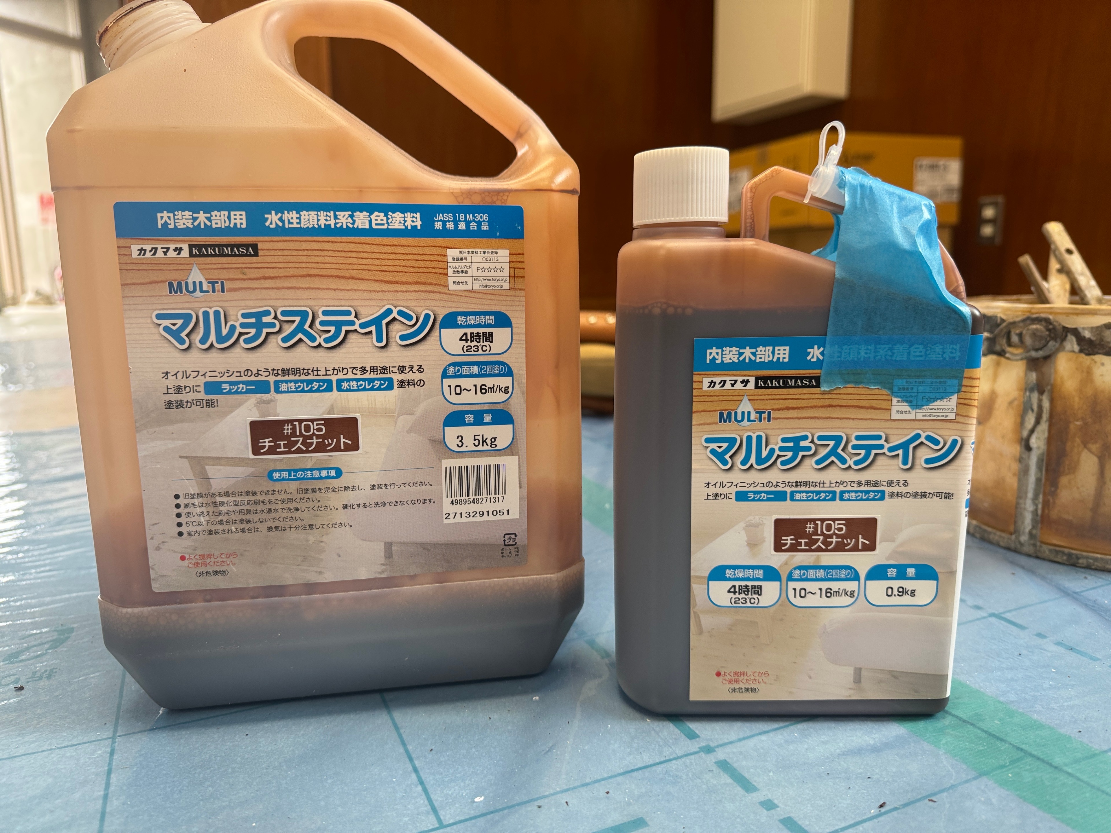 室内用でクリヤーが配合されているので2回塗りで完成です