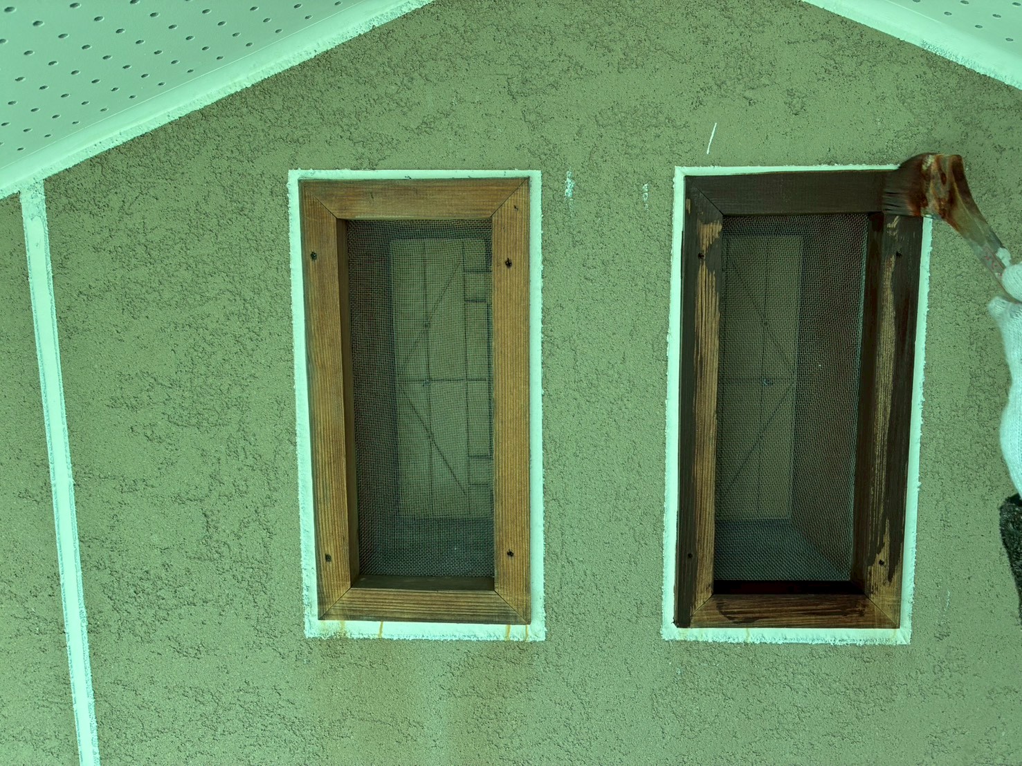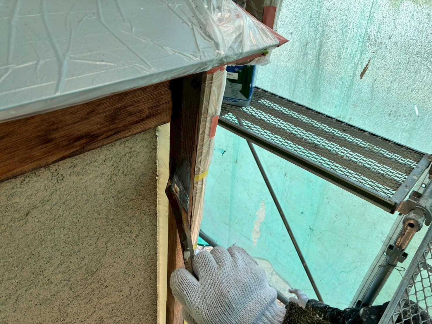 外壁塗装前に木部塗装(キシラデコール)を1度塗って養生します