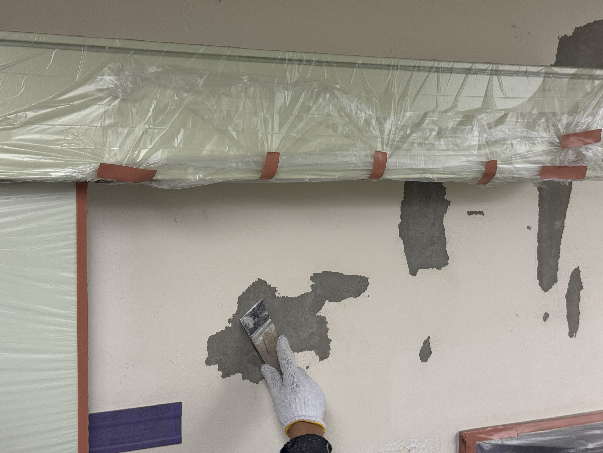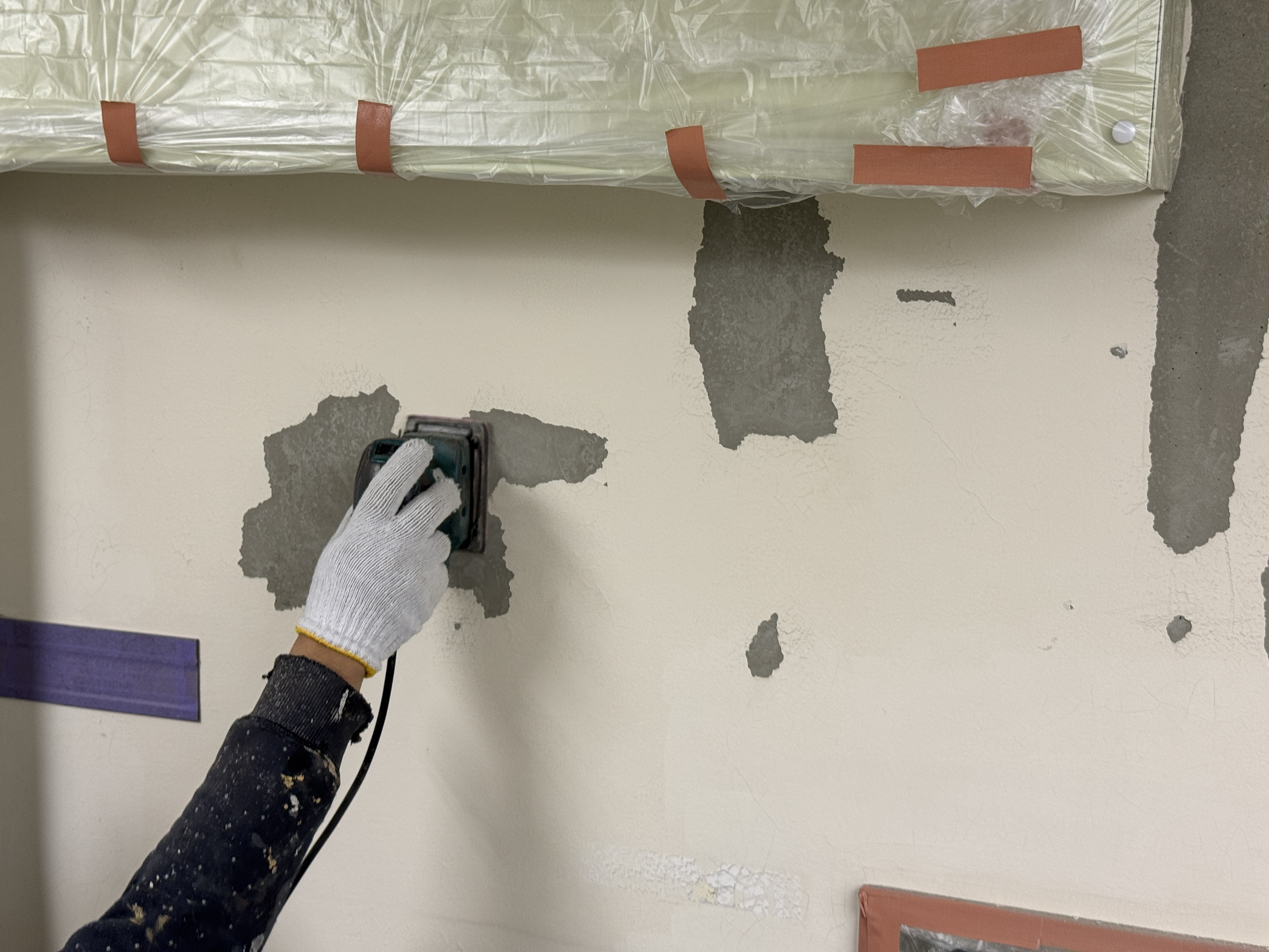 調査と除去後VE塗膜に足着けの為ペーパーかけをしています
