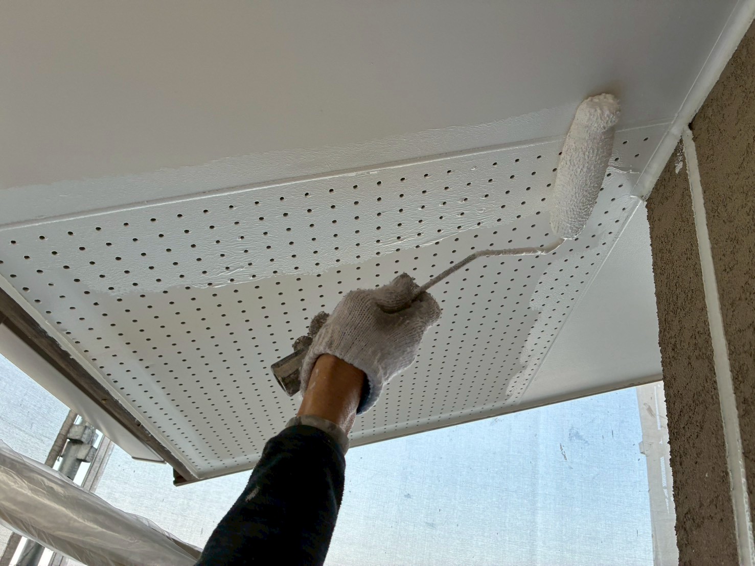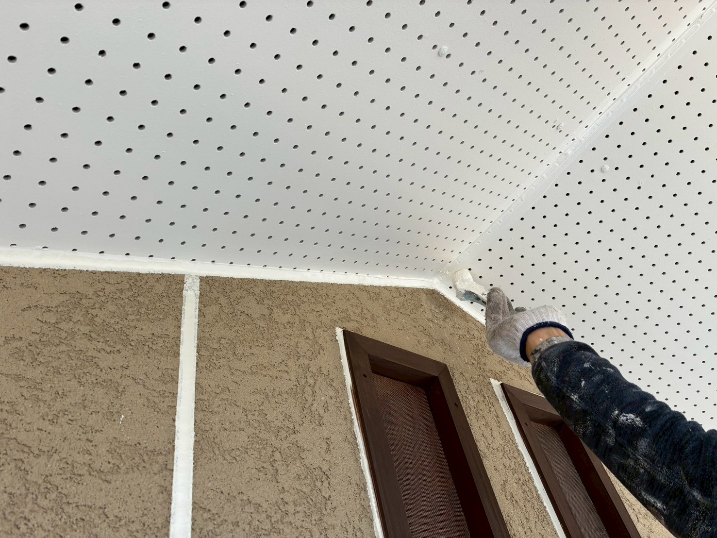 外壁の塗装前に軒天の塗装から始めていきます