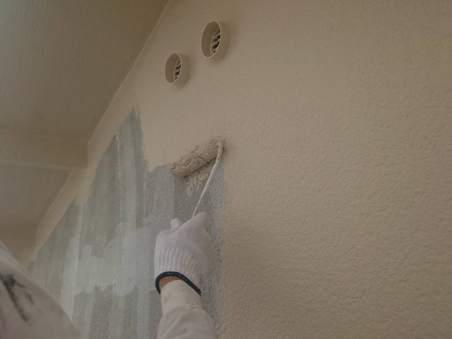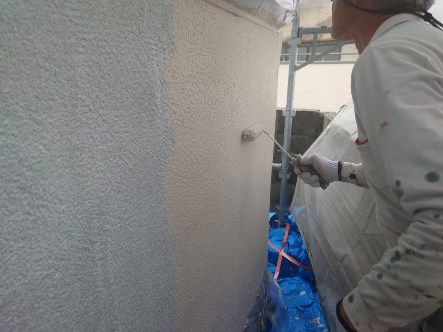 前日にカチオンフィラー下塗り①を終えカチオンフィラーにシーラーを塗る施工からです