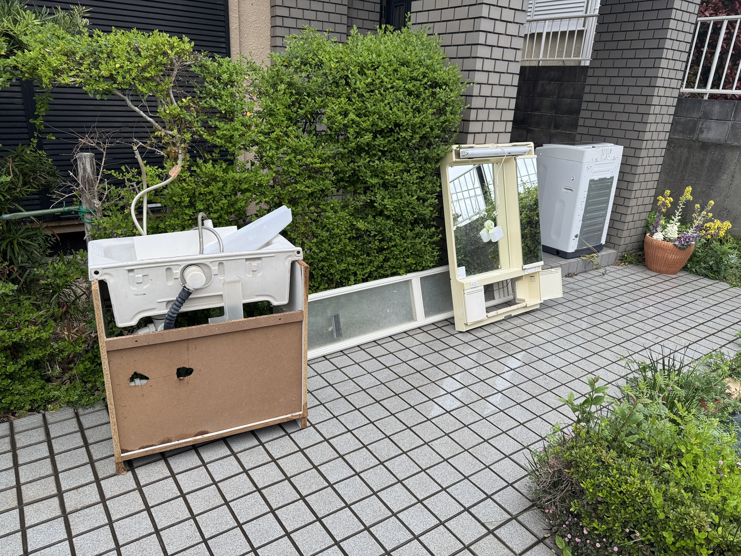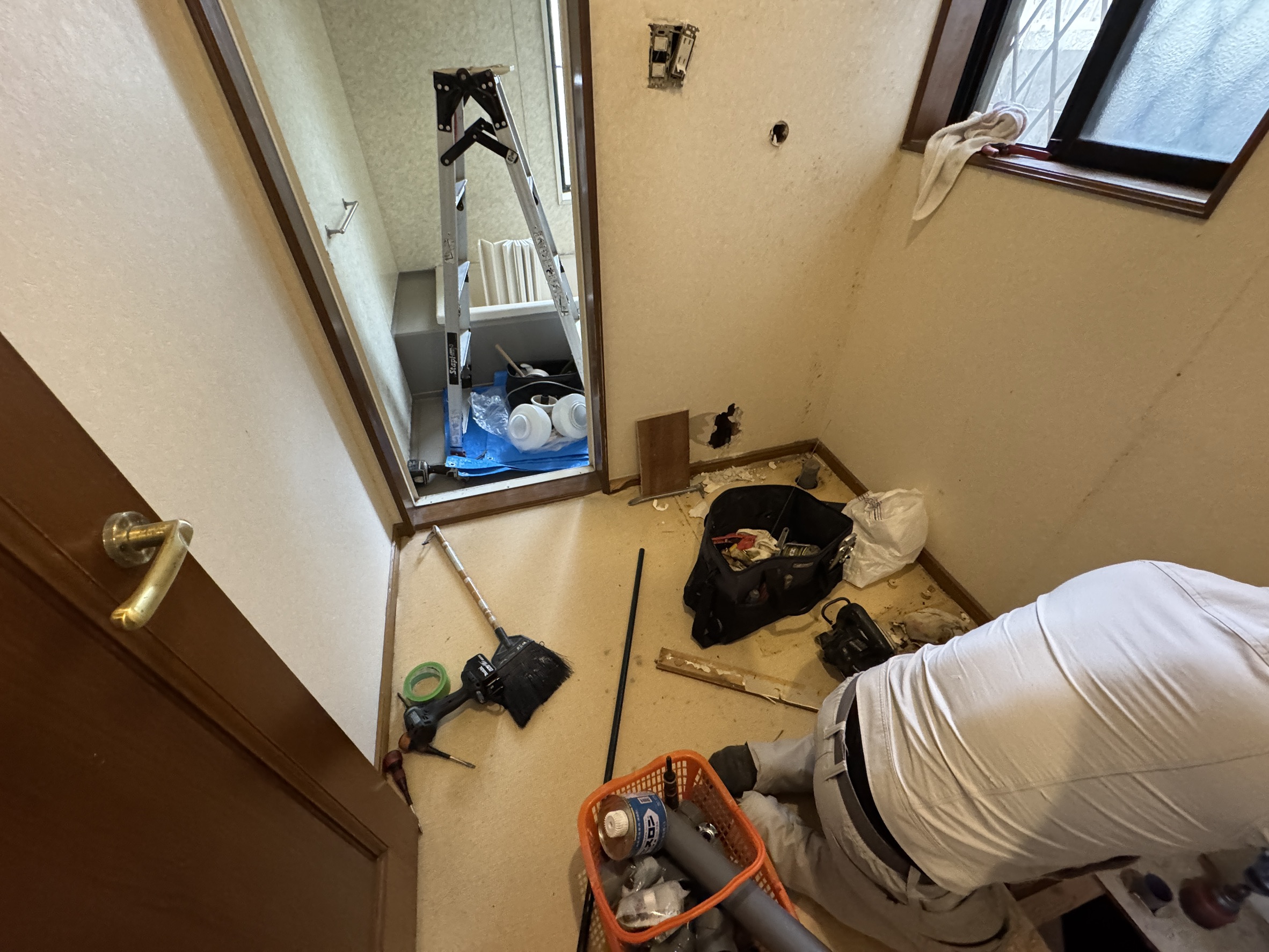 ユニットバス入替に伴う洗面所改修と洗面化粧台入替工事です
