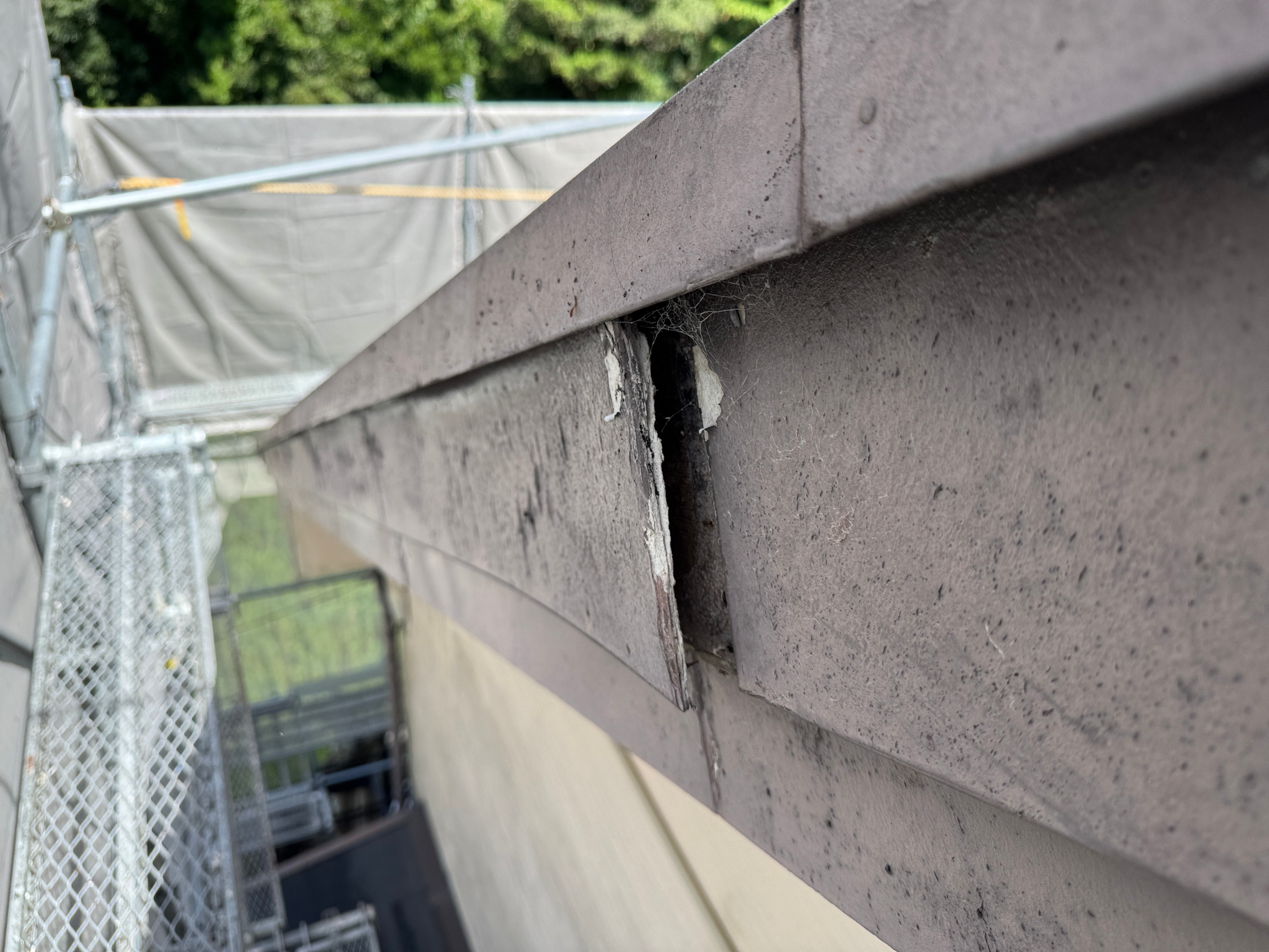 写真は施工前写真で破風板のケイカル板(5㎜)が反り上がって