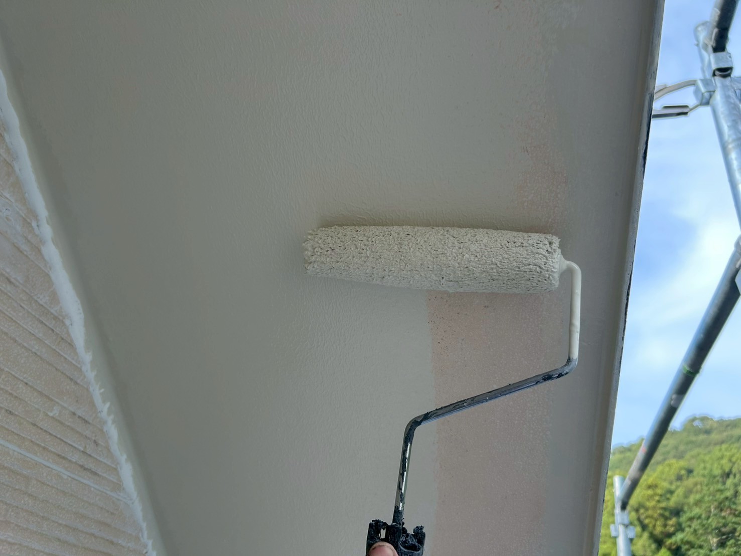 大阪府岬町のYさま邸の軒天塗装からです