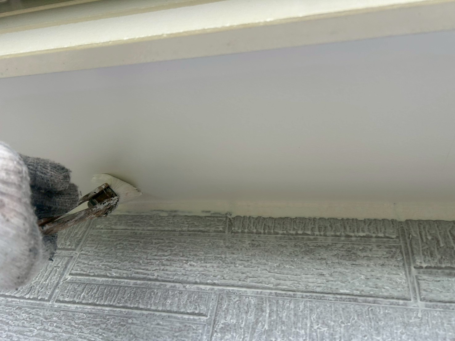 下塗りのシーラーを2回施工し軒天から塗装していきます